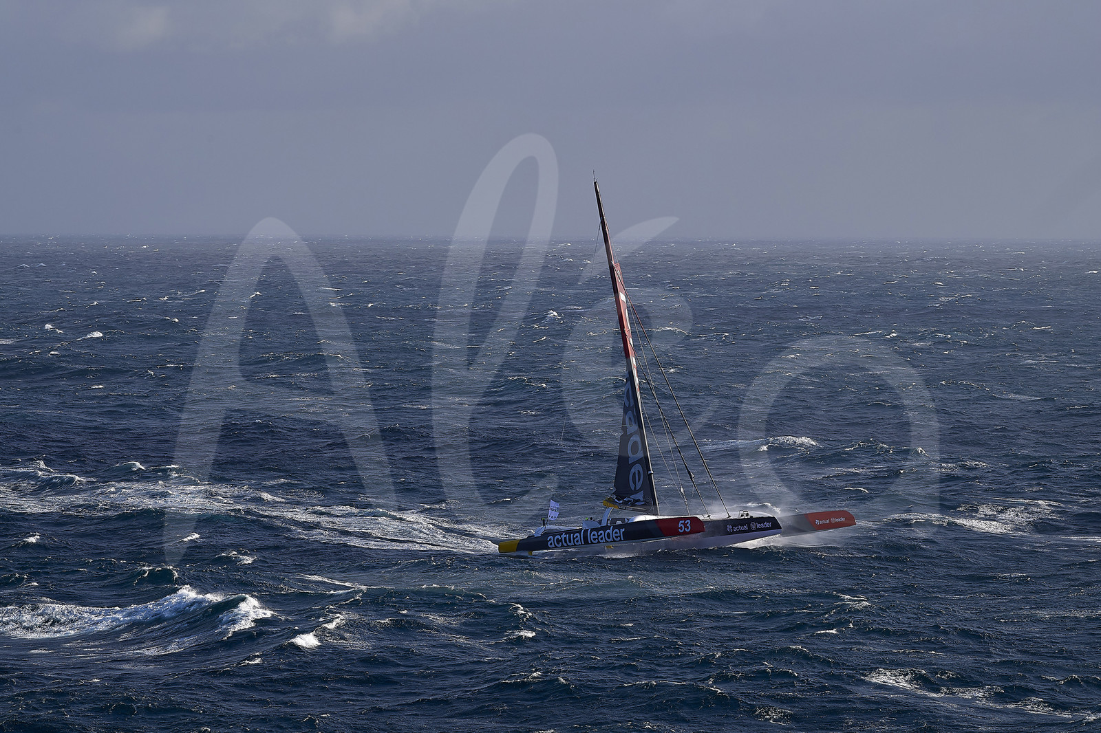 Description | BREST, FRANCE - NOVEMBER 05: Actual Leader is taking the start of the Brest Atlantiques duo sailing race on November 5, 2019 in Brest, France. Brest Atlantiques is reserved to Class Ultim 32/23, from Brest to Brest, via waypoints off Rio de Janeiro and Cape Town, without any stop. (Photo by Yvan Zedda/Alea) |