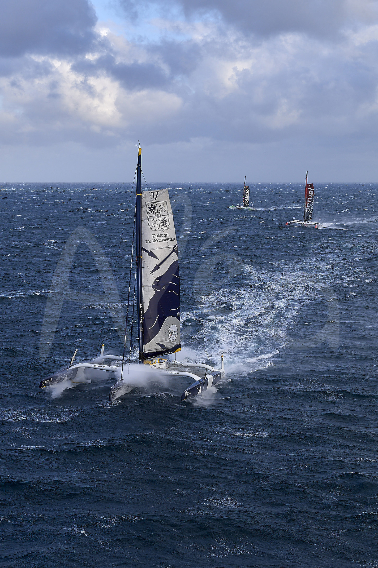 Description | BREST, FRANCE - NOVEMBER 05: Maxi Edmond de Rothschild, Sodebo Ultim 3 and Actual Leader are taking the start of the Brest Atlantiques duo sailing race on November 5, 2019 in Brest, France. Brest Atlantiques is reserved to Class Ultim 32/23, from Brest to Brest, via waypoints off Rio de Janeiro and Cape Town, without any stop. (Photo by Yvan Zedda/Alea) |