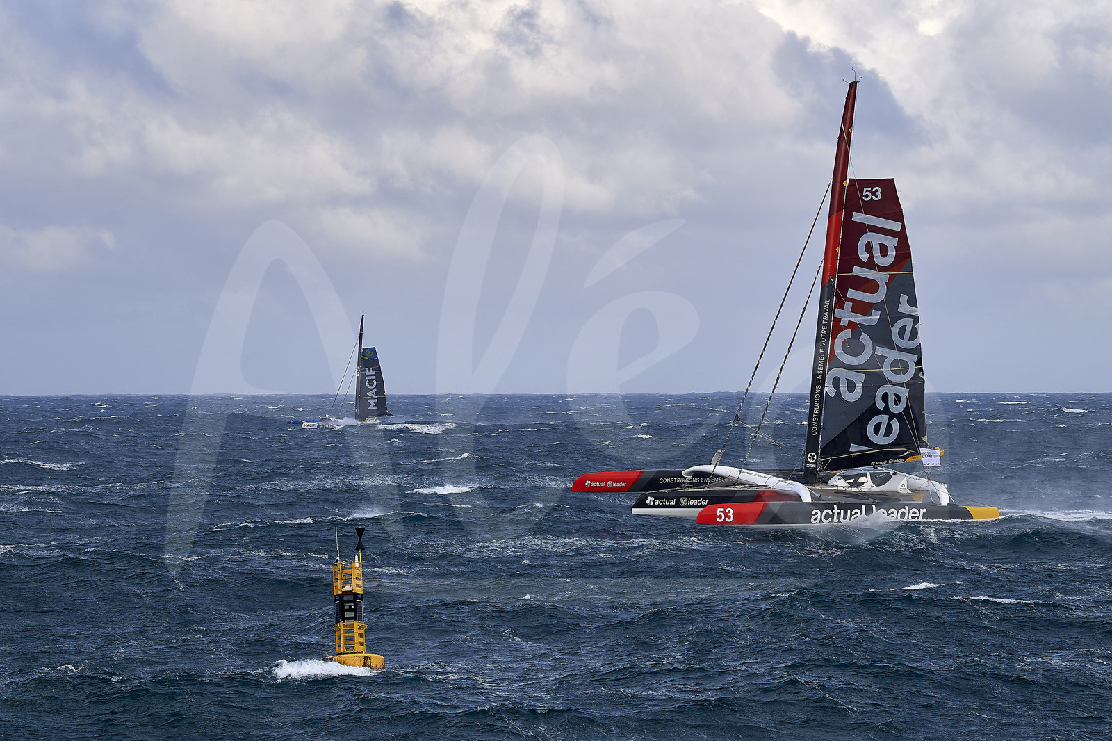 Description | BREST, FRANCE - NOVEMBER 05: Actual Leader and Trimaran MACIF are crossing the startline of the Brest Atlantiques duo sailing race on November 5, 2019 in Brest, France. Brest Atlantiques is reserved to Class Ultim 32/23, from Brest to Brest, via waypoints off Rio de Janeiro and Cape Town, without any stop. (Photo by Yvan Zedda/Alea) |