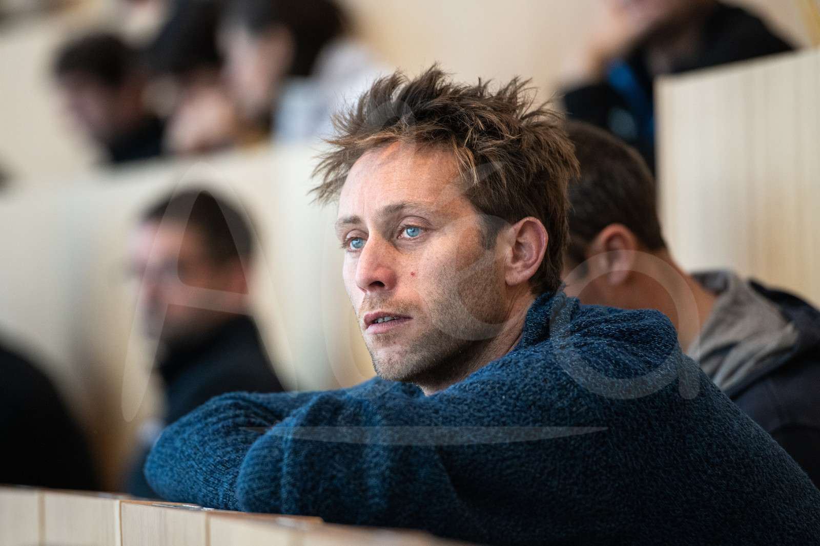 Description | LE HAVRE, FRANCE - OCTOBER 26: Skipper Ian Lipinski is attending the start's briefing during pre-start of the Transat Jacques Vabre 2019, duo sailing race from Le Havre, France, to Salvador de Bahia, Brazil, on October 26, 2019 in Le Havre, France. (Photo by Jean-Louis Carli/Alea) |