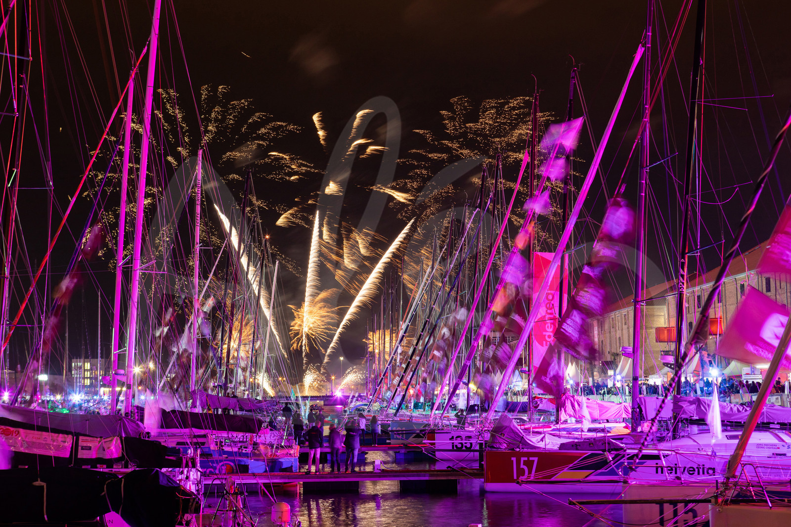 Description | LE HAVRE, FRANCE - OCTOBER 26: Public is watching fireworks from the race village during pre-start of the Transat Jacques Vabre 2019, duo sailing race from Le Havre, France, to Salvador de Bahia, Brazil, on October 26, 2019 in Le Havre, France. (Photo by Jean-Marie Liot/Alea) |