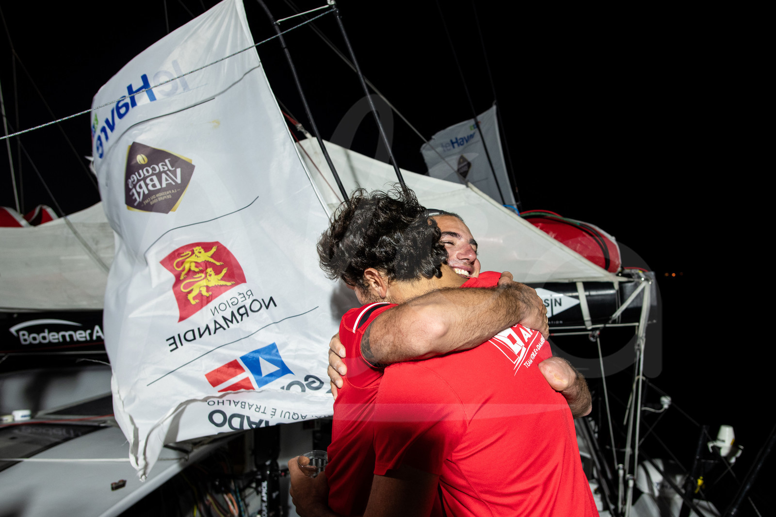 Description | SALVADOR DE BAHIA, BRAZIL - NOVEMBER 11: Groupe Apicil skippers Damien Seguin and Yoann Richomme celebrate after taking 14th place of the Imoca category of the Transat Jacques Vabre 2019 on November 14, 2019 in Bahia, Brazil. Transat Jacques Vabre is a duo sailing race from Le Havre, France, to Salvador de Bahia, Brazil. (Photo by Jean-Louis Carli/Alea) |