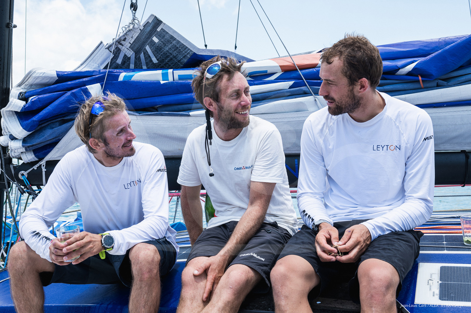 Description | SALVADOR DE BAHIA, BRAZIL - NOVEMBER 14: Leyton skippers Fabien Delahaye and Sam Goodchild are congratulated by winner Ian Lipinski after taking 2nd place in the Class 40 category of the Transat Jacques Vabre 2019 on November 14, 2019 in Bahia, Brazil. Transat Jacques Vabre is a duo sailing race from Le Havre, France, to Salvador de Bahia, Brazil. (Photo by Jean-Louis Carli/Alea) |