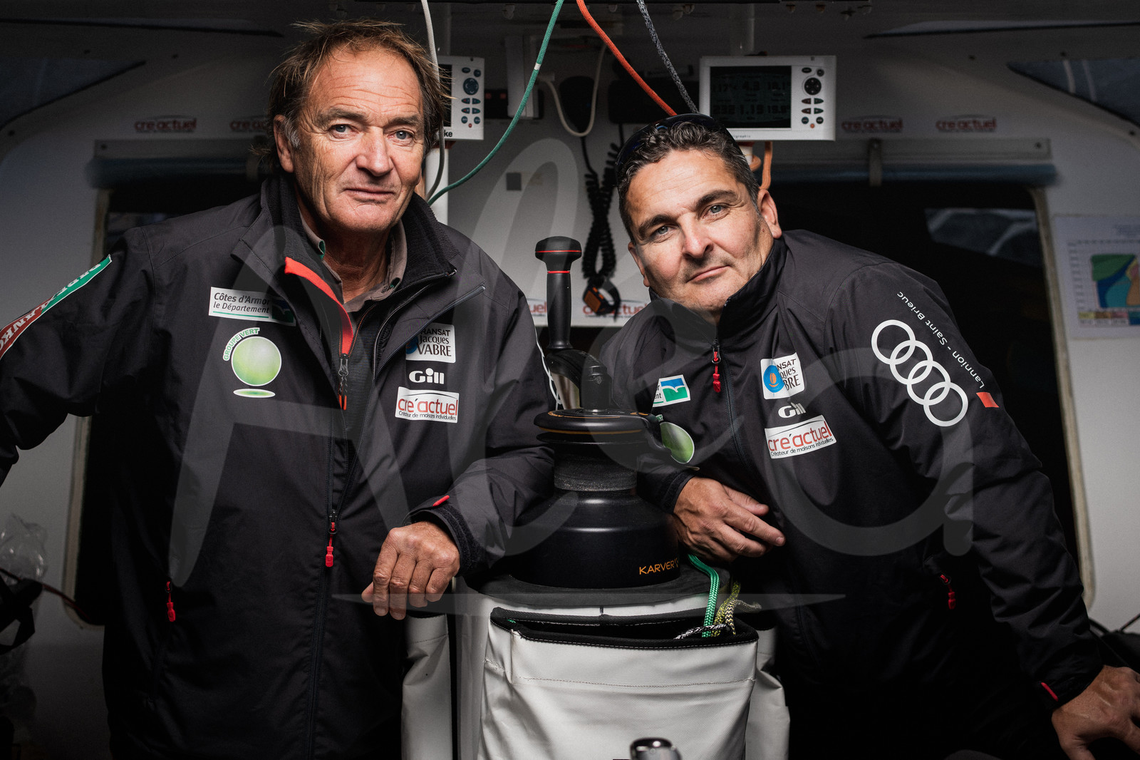 Description | LE HAVRE, FRANCE - OCTOBER 25: Class 40 Cre'actuel skippers Bertrand de Broc and Vincent Leblay are posing for an exhibition portrait during pre-start of the Transat Jacques Vabre 2019, duo sailing race from Le Havre, France, to Salvador de Bahia, Brazil, on October 25, 2019 in Le Havre, France. (Photo by Jean-Louis Carli/Alea) |