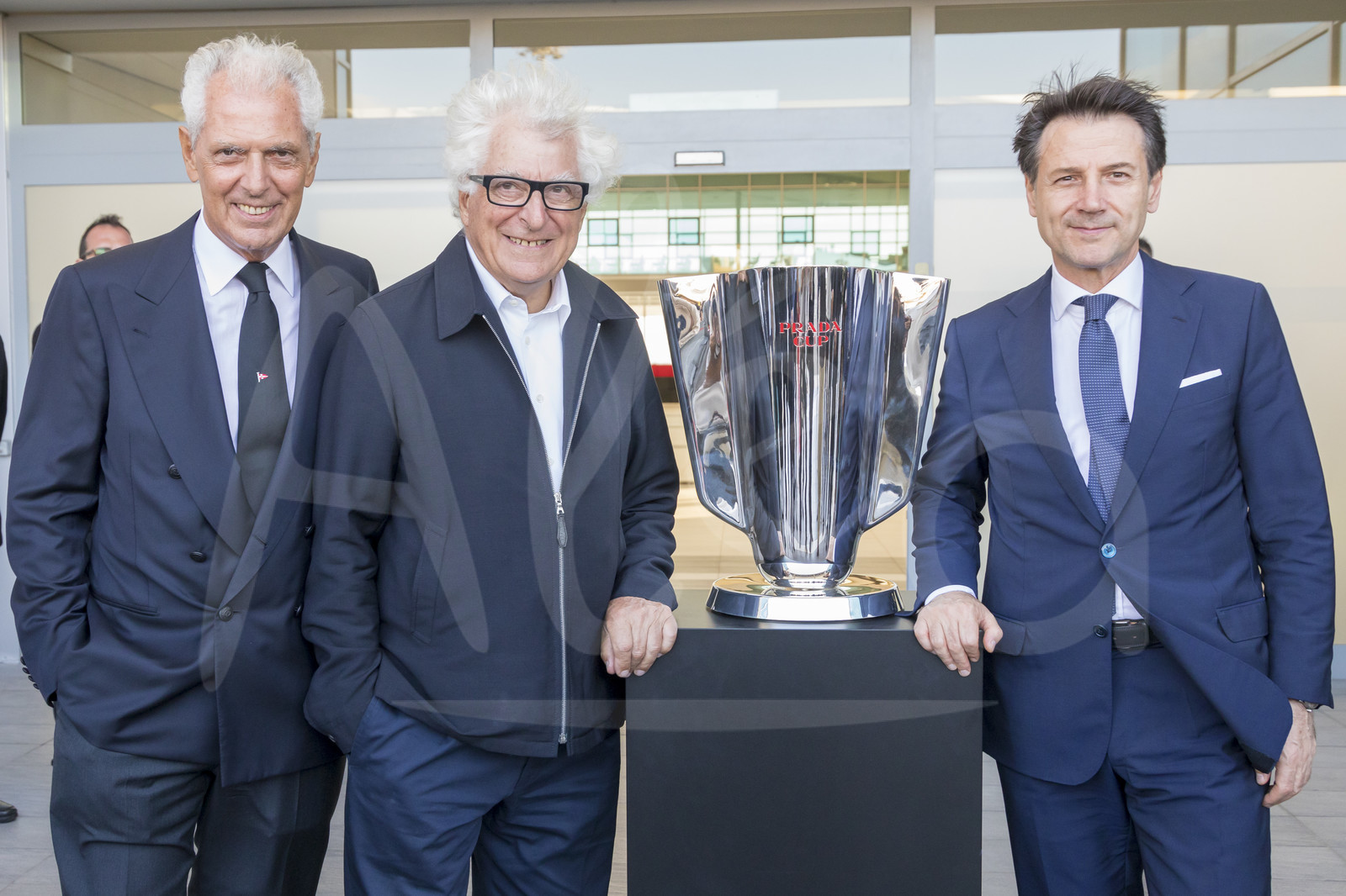 Description | CAGLIARI, ITALY - OCTOBER 02: Marco Tronchetti Provera, Patrizio Bertelli and Prime Minister Giuseppe Conte are posing during launch of Luna Rossa AC75 Prada Pirelli monohull for the America's Cup on October 2, 2019, in Cagliari, Italy. (Photo by Studio Borlenghi/Alea) |